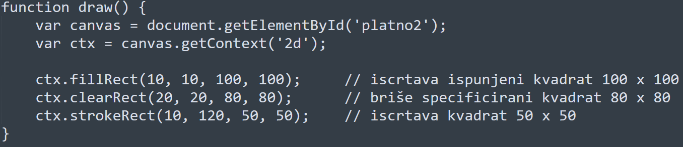 - strokeRect (x, y, w, h) – crta samo obrub pravokutnika