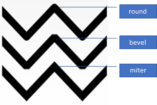 - lineJoin = type – postavlja vrstu spoja između segmenata staze