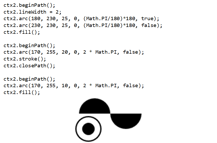 arc(x, y, radius, startAngle, endAngle, anticlockwise)