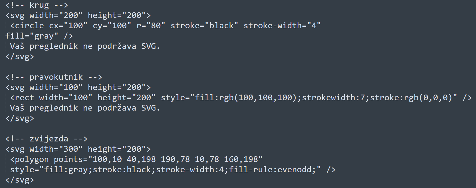 - Svojstvo svg slike jest da je na svim veličinama zaslona jednake kvalitete.