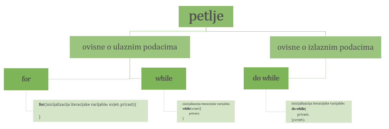 Ovisno o tome s kakvim podacima raspolažemo u većini programskih jezika možemo koristiti slijedeće vrste petlji: