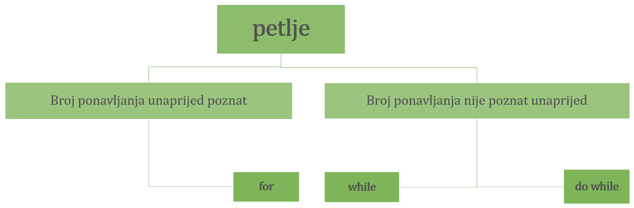 Postoje petlje za koje unaprijed znamo koliko puta će se izvesti i one za koje je to nepoznato: