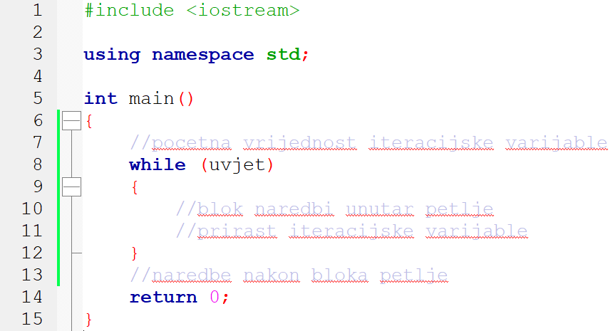 - 5. Petlja kod koje broj ponavljanja nije poznat, a uvjet se provjerava na početku