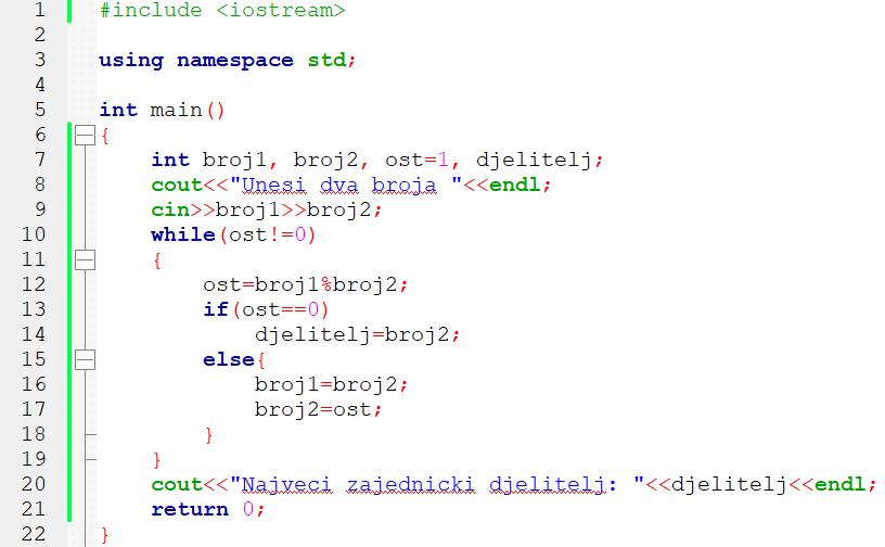3. primjer: Program koji računa najveći zajednički djelitelj dva broja