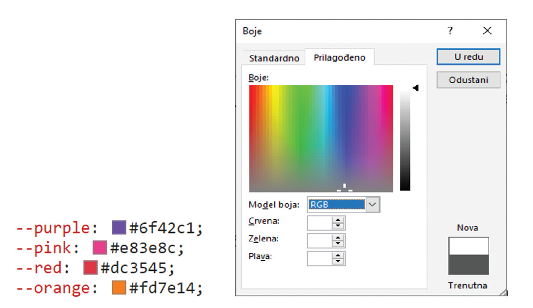 da se koriste različitim bojama koje su zapisane heksadekadski. Željeli bismo odabranom bojom s te web-stranice obojiti tekst u MS Wordu.