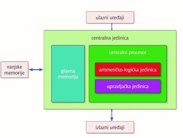 10. Na shematskom prikazu prikazane uređaje razdvoji po cjelinama Von Neumannovog modela.