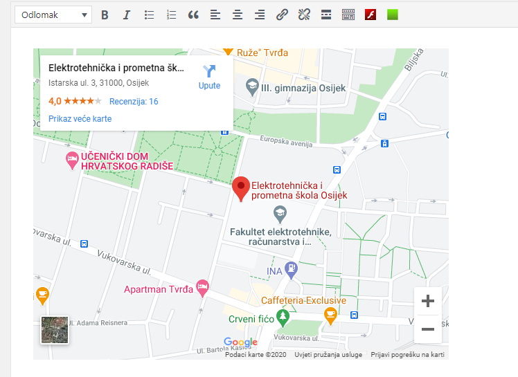Primjer (WordPress): Postupak ugradnje mape preko Google Maps