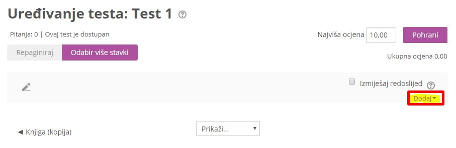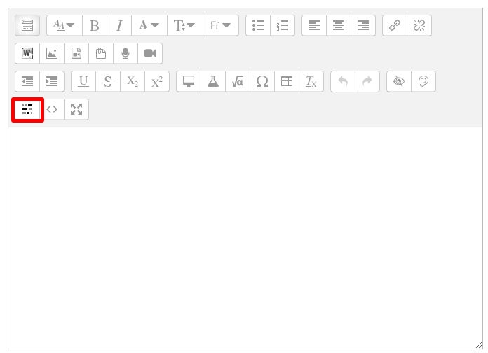 Nakon odabira ove vrste pitanja prilikom uređivanja u traci izbornika tekstualnog editora kliknimo na prvu ikonu koja nam proširuje izbornik s dodatnim elementima.