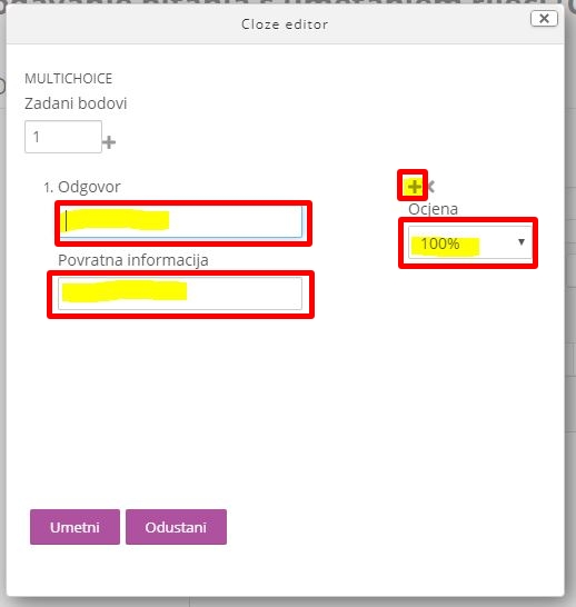 Važno je napomenuti kako je alat Cloze Editor koji će nam pomoći u stvaranju pitanja „Umetanje riječi koje nedostaju“ moguće koristiti samo u ovom tipu pitanja.